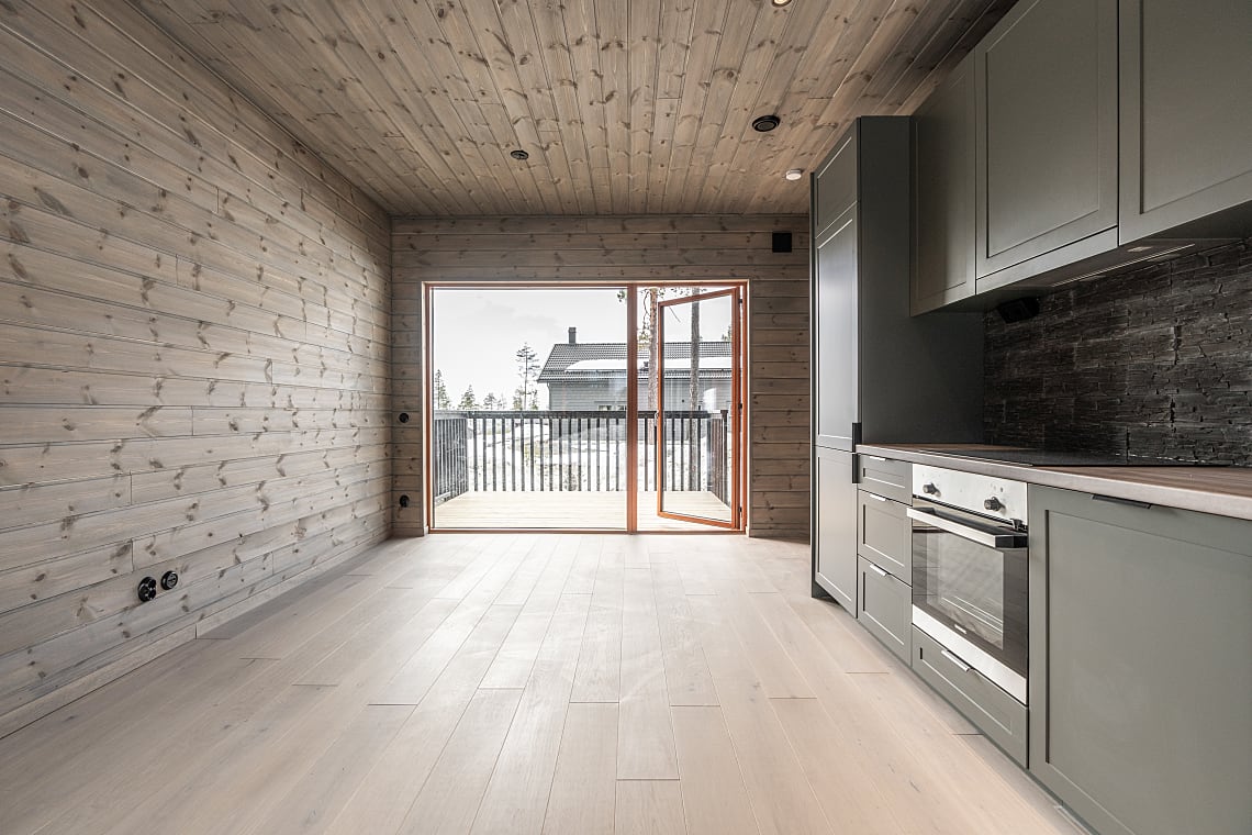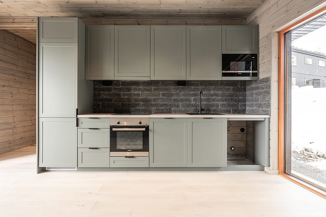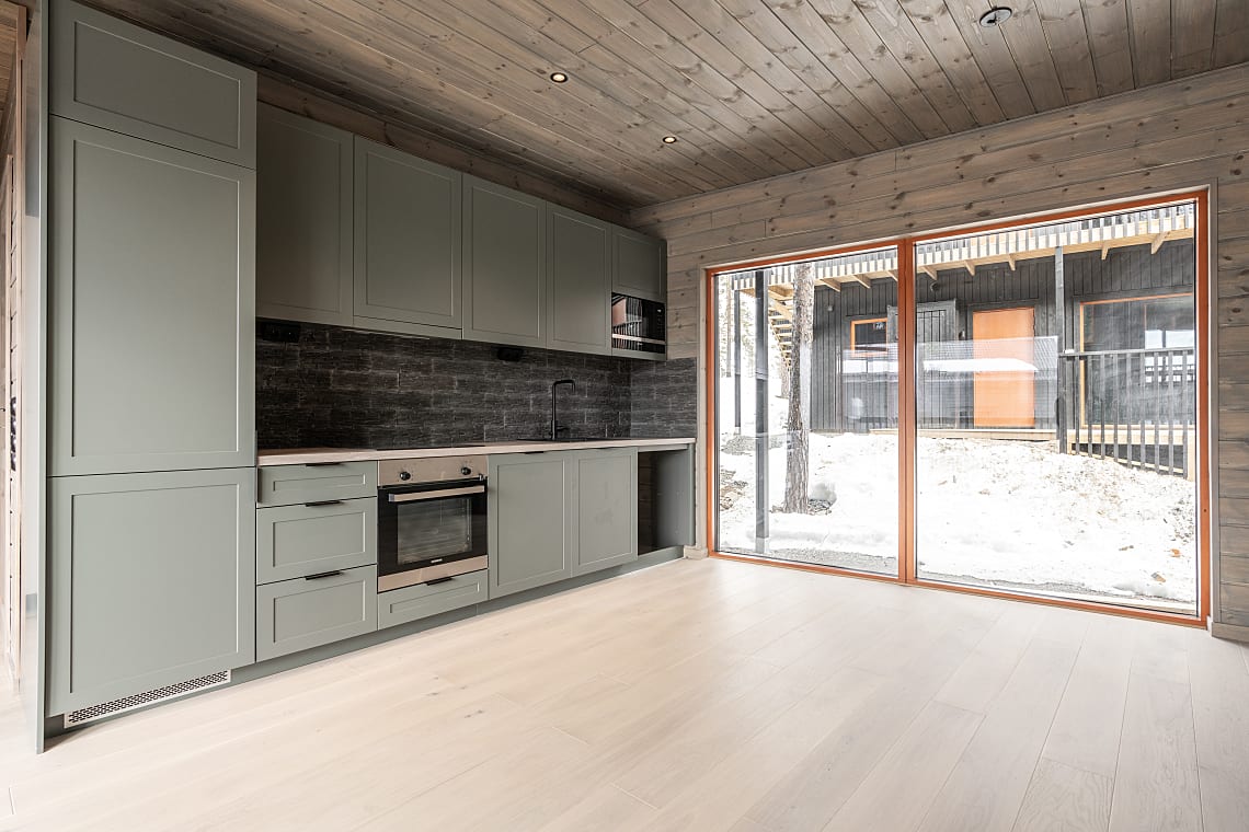 Kyl/frys, varmluftsugn, induktionshäll, mikro, diskmaskin och tvättmaskin.