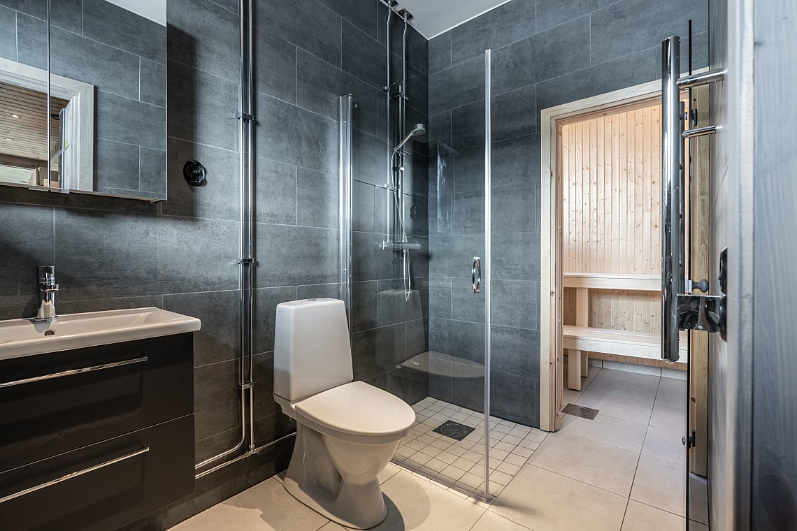 Hela lägenhet har vattenburen golvvärme, förutom badrummet som har elburen komfortvärme.