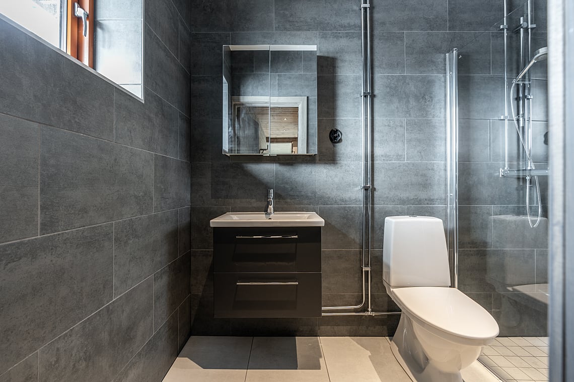 Väggkakel mörkare grå 30 cm x 60 cm.